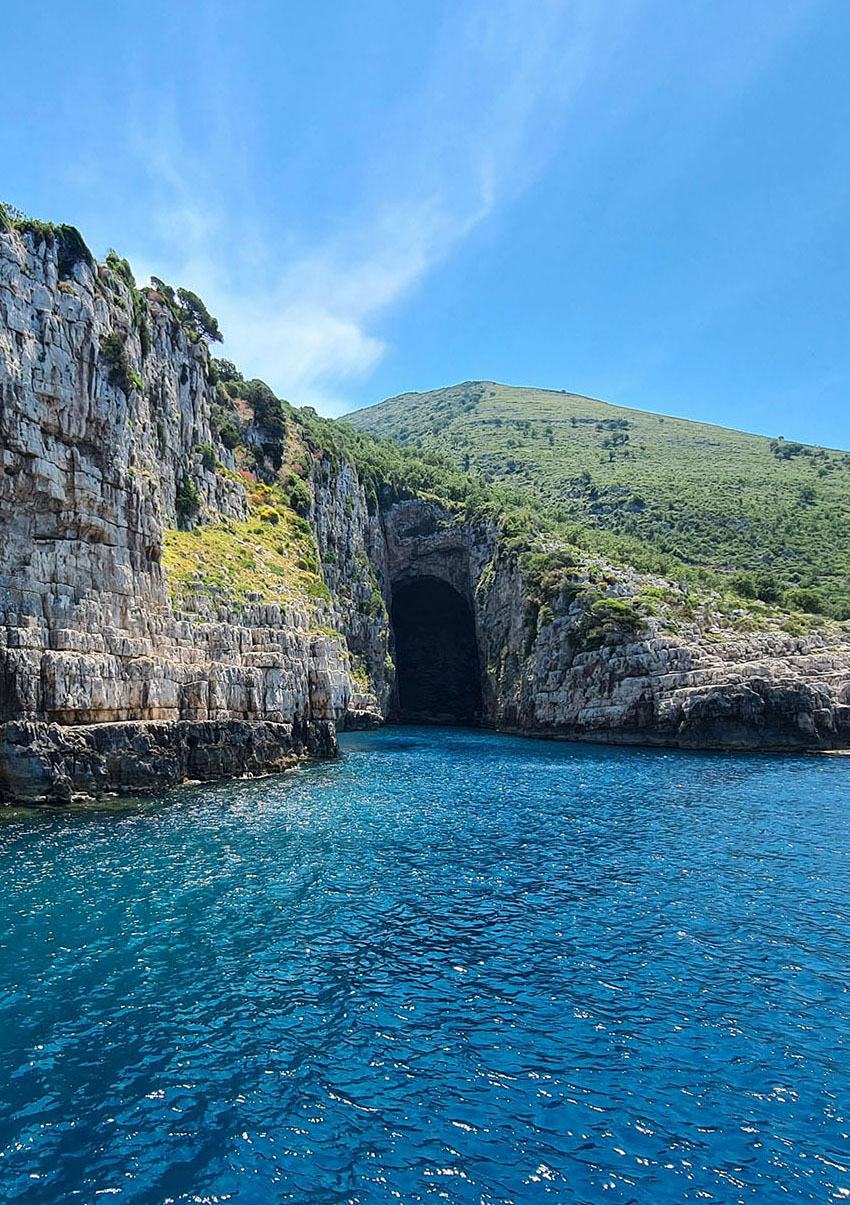 Leave with us and discover the coast of Vlorë which can only be reached from the sea. Discover the pristine beauty of Sazan-Karaburun National Marine Park and the great history of Sazan Island. Explore the Haxhi Ali Cave full of colors and surrounded by wild nature. Swim and snorkel in the underwater world of caves. Dive into the adventure today and reach Dafina Bay! Contact us and book your tour now.